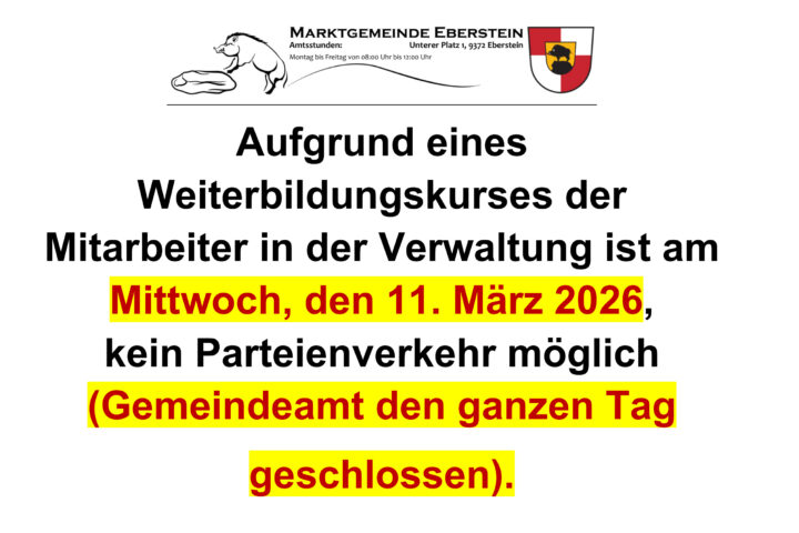 Gemeindeamt am 11.3.2026 wegen Fortbildung geschlossen!